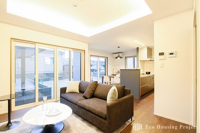 メンテナンスフリーのタイル外壁と寄棟屋根の美しい佇まいが特徴です。