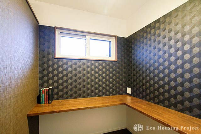 10帖の広々とした寝室は造作のカウンターやTVボードで部屋を仕切り、一角を書斎として使うことができるようにしました。